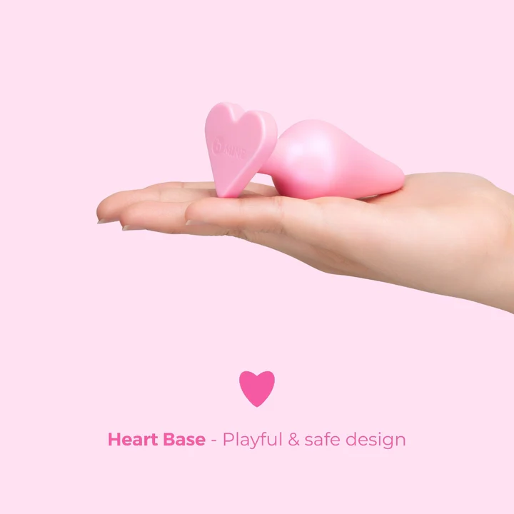 Butties B-Mine Plug by B-Vibe: The Butties b-Mine Heart Base Silicone Butt Plug is a perfect choice for those new to anal play, standing at 3.5" with a tapered design that ensures gentle insertion. Its sleek, soft silicone surface feels luxurious against the skin, while the heart-shaped flared base provides added safety and a hint of playfulness. This plug is also 100% waterproof, making bathtime more adventurous and hassle-free when it comes to cleaning.