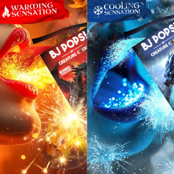 Creature Cocks BJ Pops by XR Brand: Once this candy is exposed to water or saliva, these sizzling, fizzing, popping candies stimulate the mouth and any other body-part they come into contact with! Enhance oral sensations and enjoy the warming cinnamon or cooling spearmint flavors!
