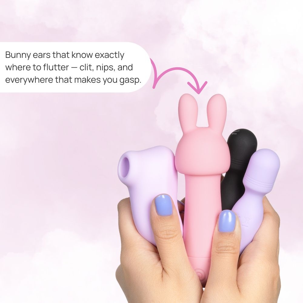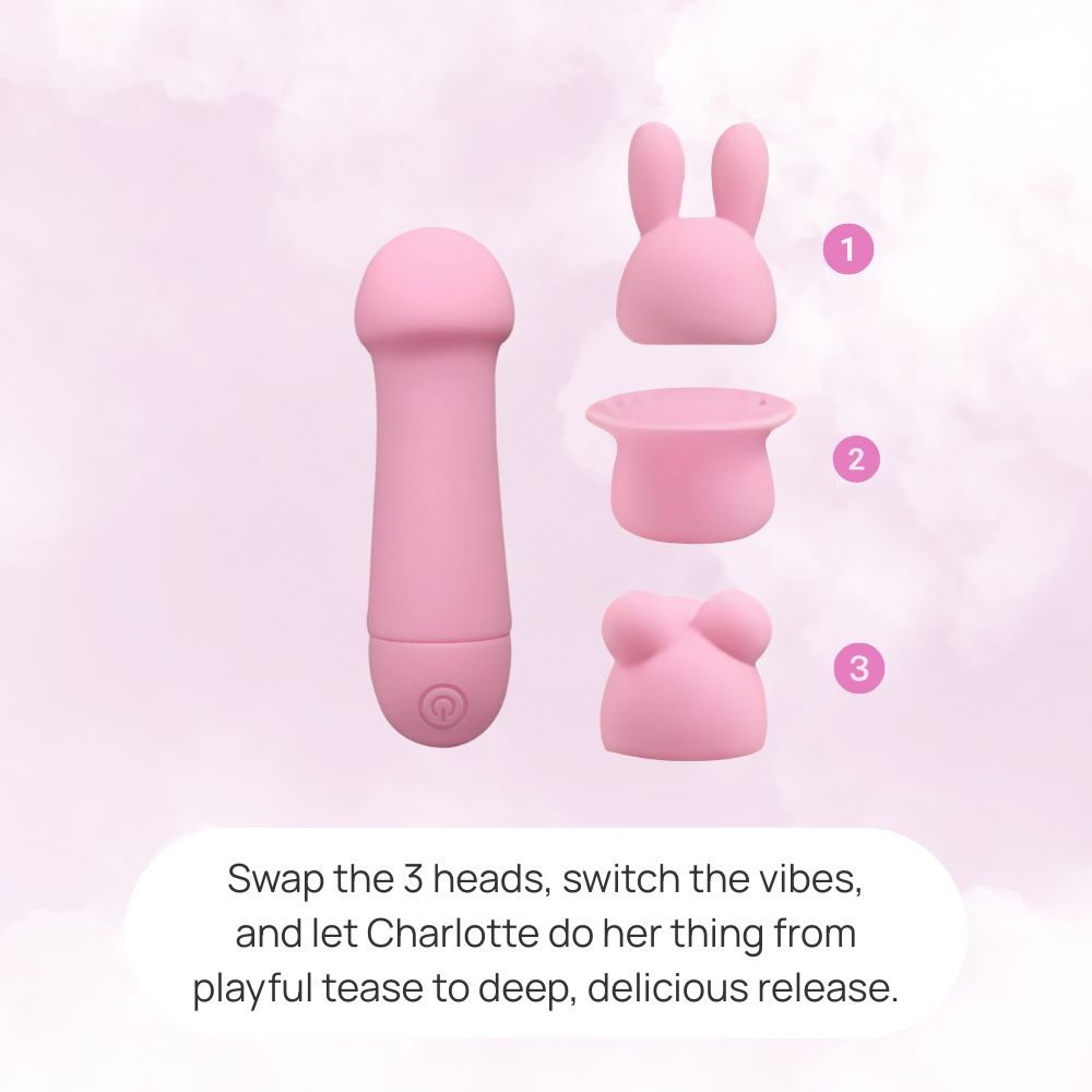 Charlotte by Esmerelda: Meet Charlotte – the mini vibrator that offers versatility and pleasure with 3 adjustable heads: bunny ears for precise stimulation, bristles for velvety waves and a curvy head for deep massage. Inspired by Sex and the City, rechargeable Charlotte is water-resistant, low noise, and travel-friendly with 10 vibration modes for up to 60 mins of play!