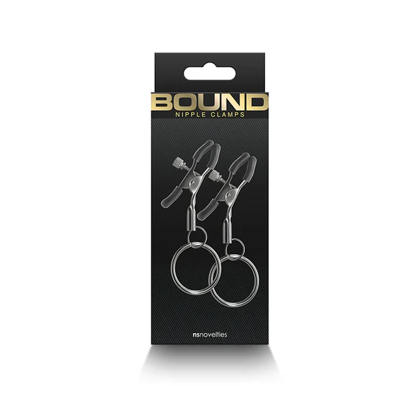 Gunmetal Bully Nipple Clamps by NS Novelties: Bound Adjustable Nipple Clamps are for erotic and stimulating sensations. Made from nickel-free metal, Bound's clamps feature silicone tips for a better comfort and fit.