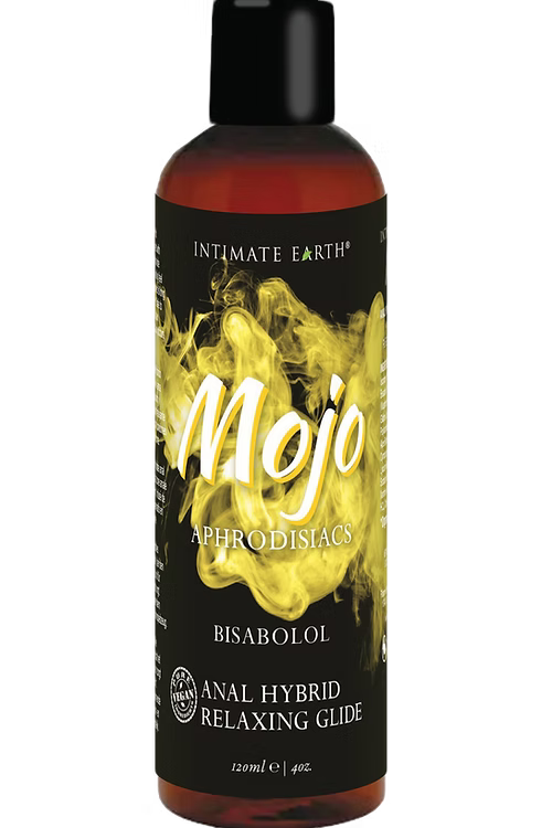 Mojo Anal Hybrid Relaxing Glide by Intimate Earth: Mojo Anal Relaxing Hybrid Glide is blended with Bisabolol to relax and provide maximum comfort. The silky feel of silicone and water blended is long lasting and pleasurable. Super Thick formula that does not drip and stays put. Condom & Silicone Toy Safe. Paraben Free & Pure Vegan. 4oz/120ml