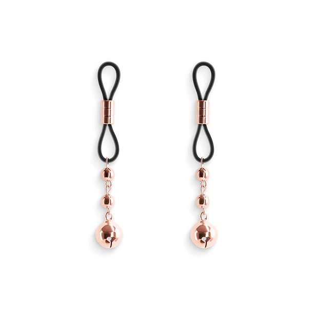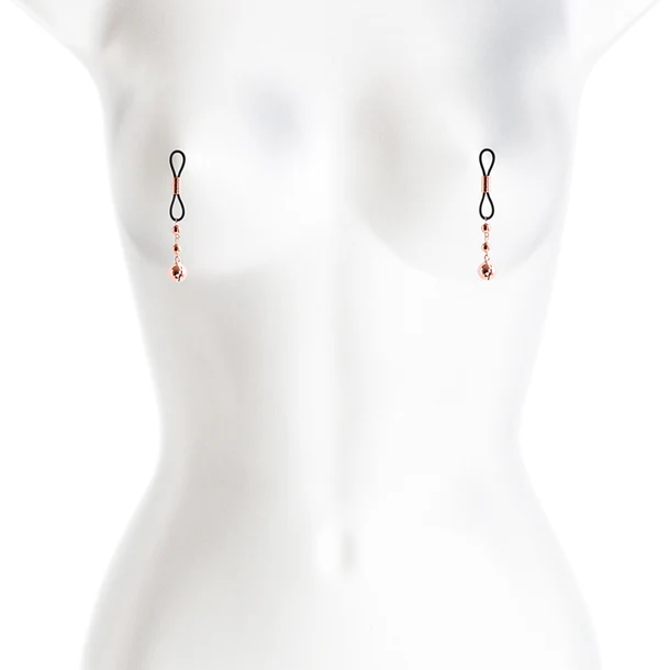 Rose Gold Nipple Loops with Drop-Beads by NS Novelties: Bound Adjustable Nipple Clamps are for erotic and stimulating sensations. Made from nickel-free metal, Bound's clamps feature silicone tips for a better comfort and fit.