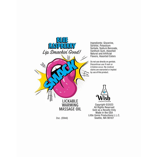 Smack Warming & Lickable Massage Blue Raspberry -3ml: Discover the ultimate sensory experience with SMACK Lickable Massage Oil, now available in a handy 3ML pouch. Perfect for spontaneous moments, this compact size ensures you're always ready to indulge in a tantalizing massage journey. The Blue Raspberry flavor offers a sweet and playful twist, inviting you and your partner to explore a world of taste and touch.