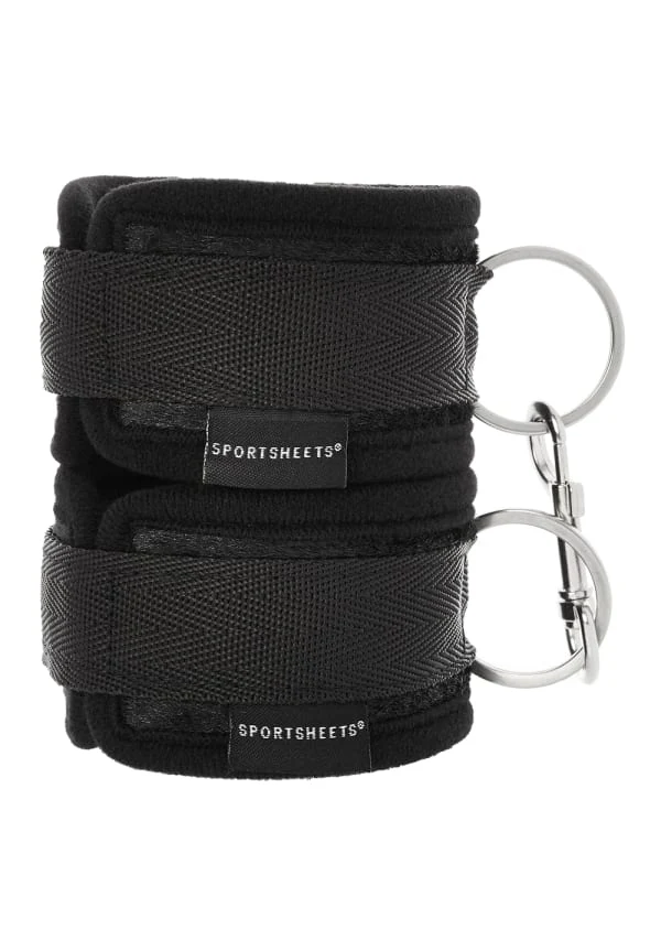 Soft Wrist Cuffs by Sportsheets: Linked together handcuff style, or connected to your favorite Sportsheets® restraint system, these cuffs are lined with ultra soft material to keep those tender wrists and ankles safe, yet securely latched in the heat of the moment. Tough on the outside, smooth on the inside, these restraints feature easy-off hook and loop closures, constructed of durable metal that's sure to keep a tight lock on every naughty situation you dream up.