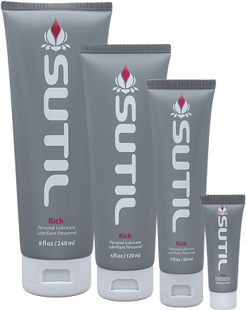 Sutil Rich. SUTIL Richs new formulation with a pH of 6 optimal for the anus but still in range for the vagina. Sutil Rich has enhanced viscosity to ease anal penetration, help alleviate menopausal discomfort and soothe dry and delicate tissues. Horny Goat Weed has been used in China for 2000 years. Chinese Herbalists observed very sexually active old goats eating this weed, hence the name. It enhances libido in both men and women when taken internally by increasing energy and stimulating sexual hormone production. It is like a natural Viagra. Topically (as used in our lubricant) it can have a slight vasodilating effect on erectile tissue (brings blood to the area). It is also applied to help alleviate menopausal discomfort and soothe dryness.